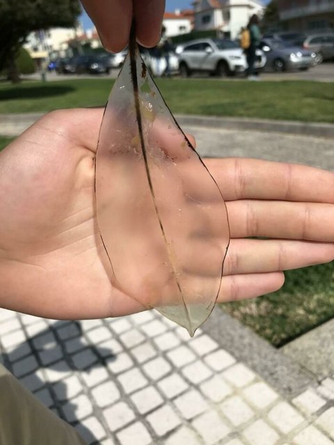 Havuzda çok durduğu için pigmenti kalmayan beyaz yaprak.