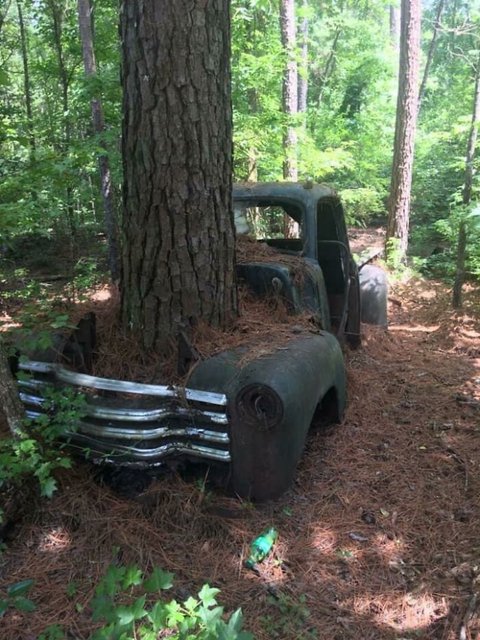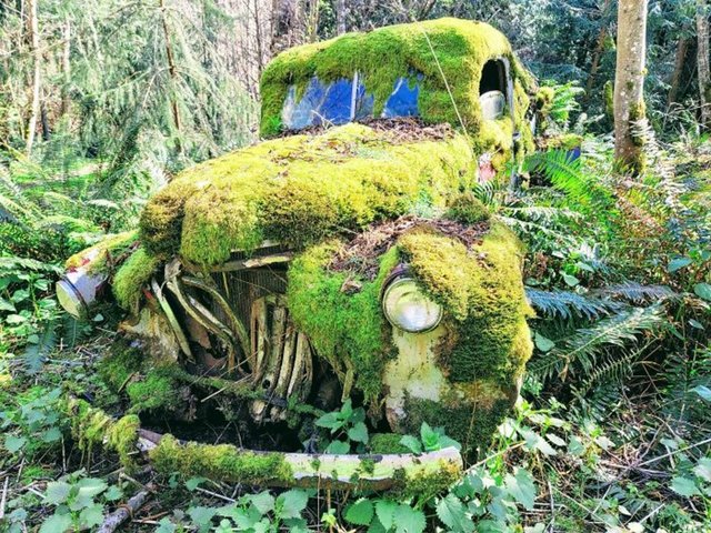 Yıllardır kullanılmayan araç doğa tarafından ele geçirilmiş.