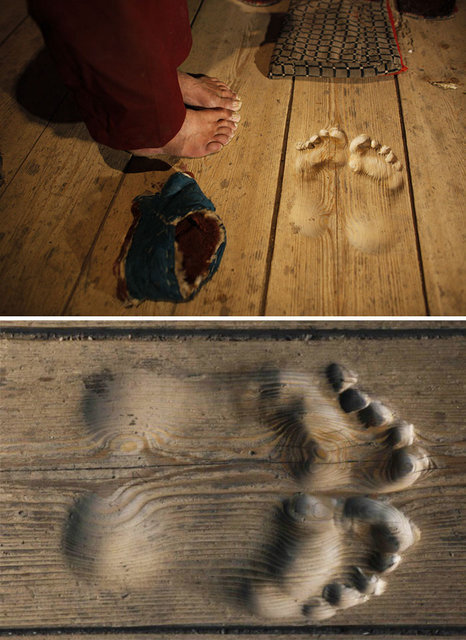 Bir adam yıllar boyunca aynı yere bastığı için yüzeyde ayak izi oluşmuş.