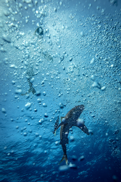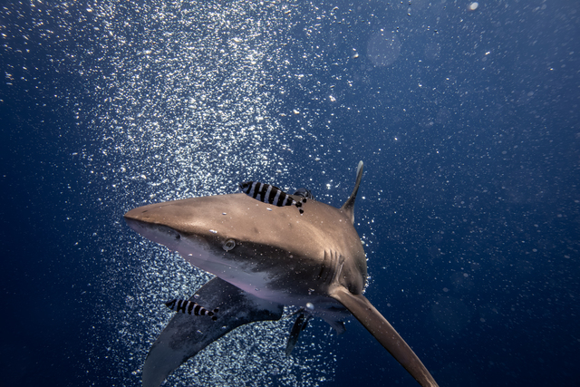 Yaptıkları dalışta 12 beyaz yüzgeç resif köpek balığını aynı anda görüntüleyen ekip, dönücü yunusların su altındaki dansına da tanıklık etti. Ayrıca beyaz yüzgeç resif köpekbalıklarının etrafındaki konakçı olarak bilinen pilot balıklar da gözlemlendi.