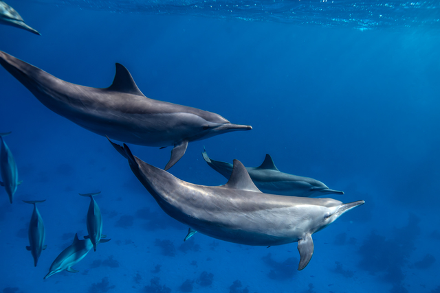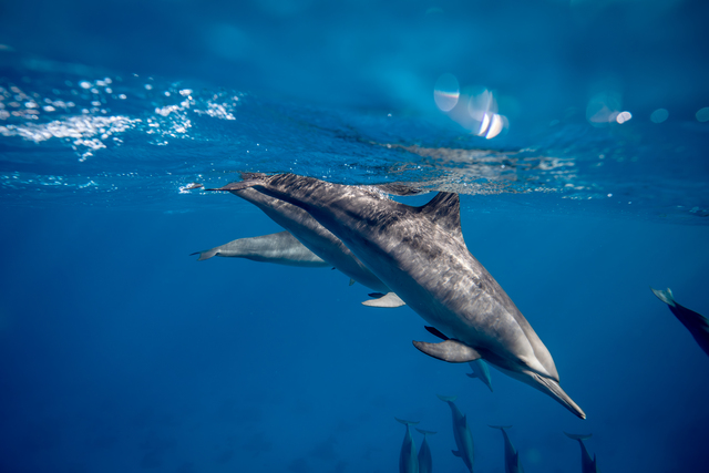İklim değişikliği ile insan kaynaklı kirlenme gibi sebeplerle yok olma tehlikesiyle karşı karşıya kalan Kızıldeniz'in beyaz yüzgeç resif köpek balığı ve uzun burunlu dönücü yunusları AA tarafından görüntülendi