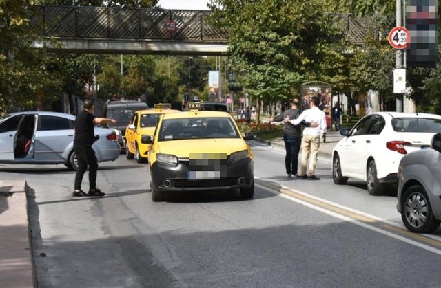 Bu sırada yoldan geçen bir araç sürücüsü Nesrin Cavadzade'yi görüp tanıyınca bakakaldı. Sürücü, ünlü oyuncuya baktığı sırada öndeki aracın durduğunu göremeyince arkadan çarparak kaza yaptı.