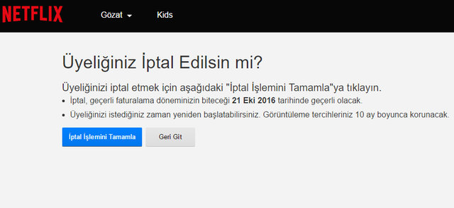 Son olarak iptal etmek istediğinize dair onayı verirseniz Netflix hesabınız siz aktif edene kadar iptal edilmiş olacak.