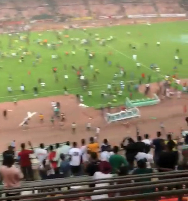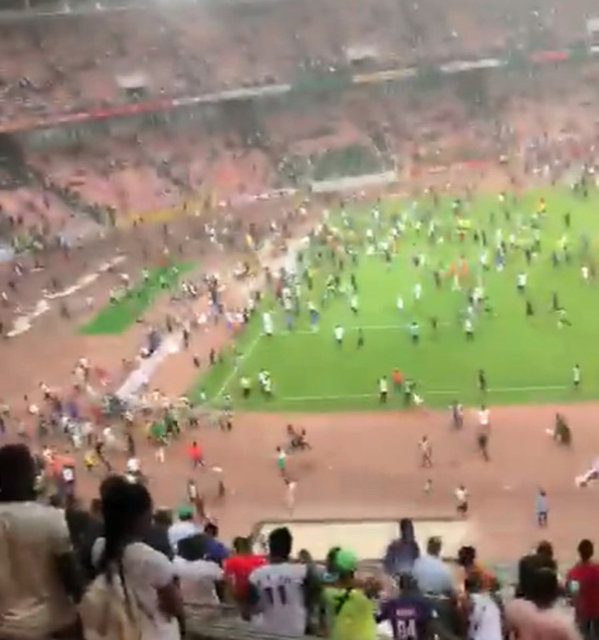 Nijerya'nın turnuvaya veda etmesine öfkelenen taraftarlar sahayı indi. Skora kızan taraftarlar, saha içinde futbolcuları kovaladı.