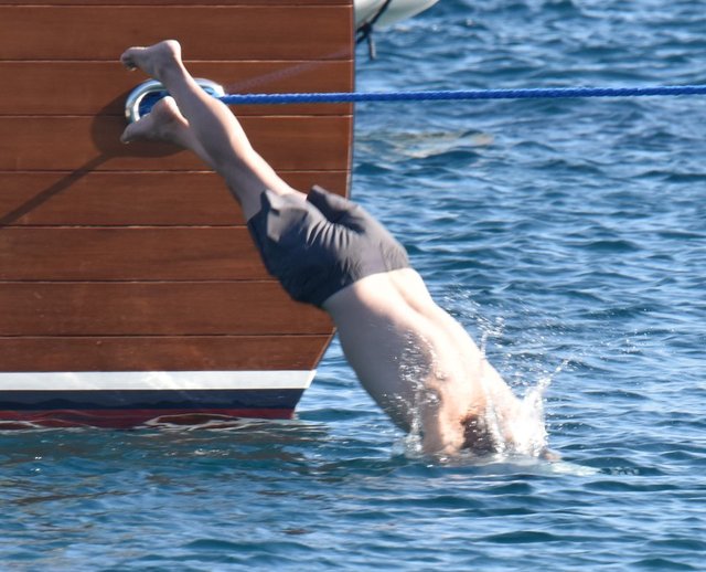 Ardından Serdar Erener, kendisini Bodrum'un serin sularına bıraktı.