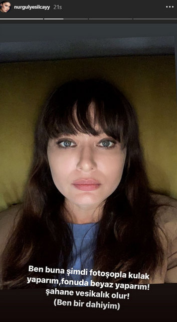 Ünlü oyuncu Nurgül Yeşilçay, selfiesini sosyal medya hesabından, "Ben buna şimdi photoshopla kulak yaparım, fonu da beyaz yaparım. Şahane vesikalık olur. Ben bir dahiyim!" notu ile yayınladı. Oyuncu, paylaşımıyla takipçilerini güldürdü