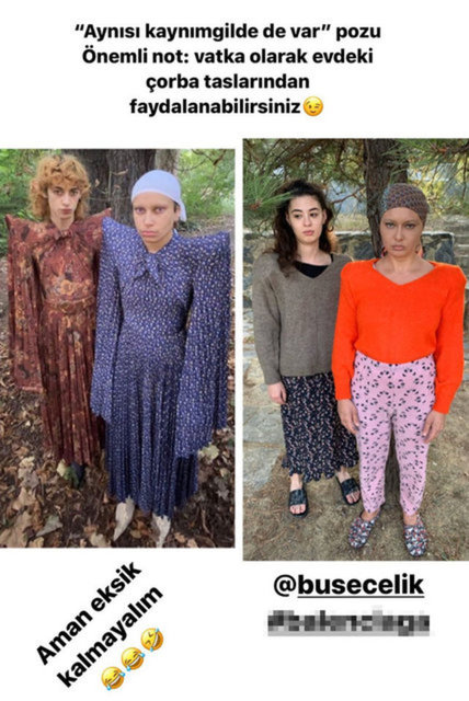 Yeşilçay, paylaşımına "Aynısı kaynımgilde de var' pozu. Önemli not; vatka olarak evdeki çorba taslarından faydalanabilirsiniz. Aman eksik kalmayalım" notunu düştü.
