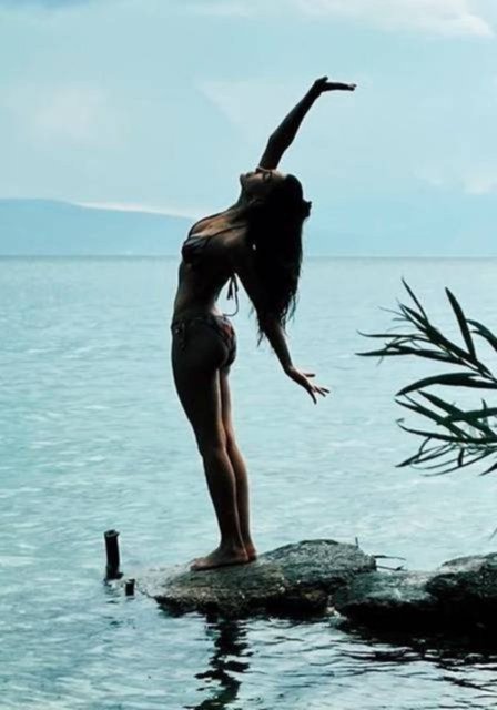 Eda Taşpınar da her yaz olduğu gibi Yunanistan'ın Mikonos Adası'nda tatil yapıyor.