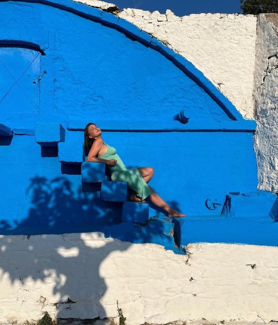 Instagram hesabında 3.1 milyon takipçisi olan 47 yaşındaki güzel oyuncu Nurgül Yeşilçay, mavi merdivenlere uzanarak verdiği pozları: "Tatil devam tabii ki" notuyla sevenlerinin beğenisine sundu.