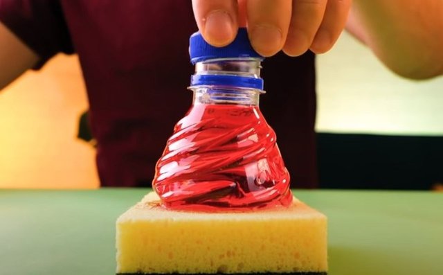 Bir pet şişesini kesin ve bulaşık süngerine yapıştırın. Pet şişe kısmına bulaşık deterjanı doldurarak, çok daha hızlı bulaşık yıkayabilirsiniz.
