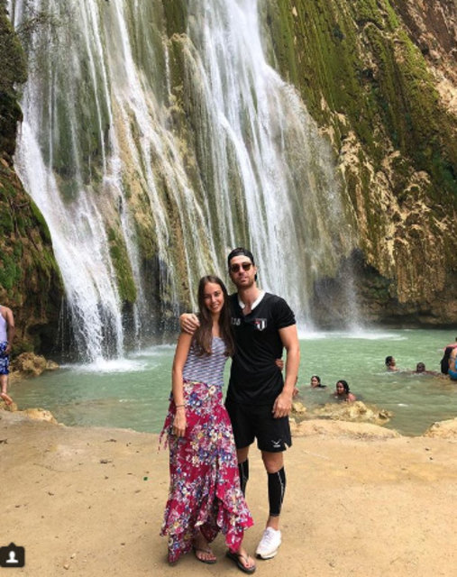 Genç adam, sevgilisiyle şelalenin önünde verdiği pozu kalp emojisi ile birlikte paylaşıp "Bebek" notunu düştü.