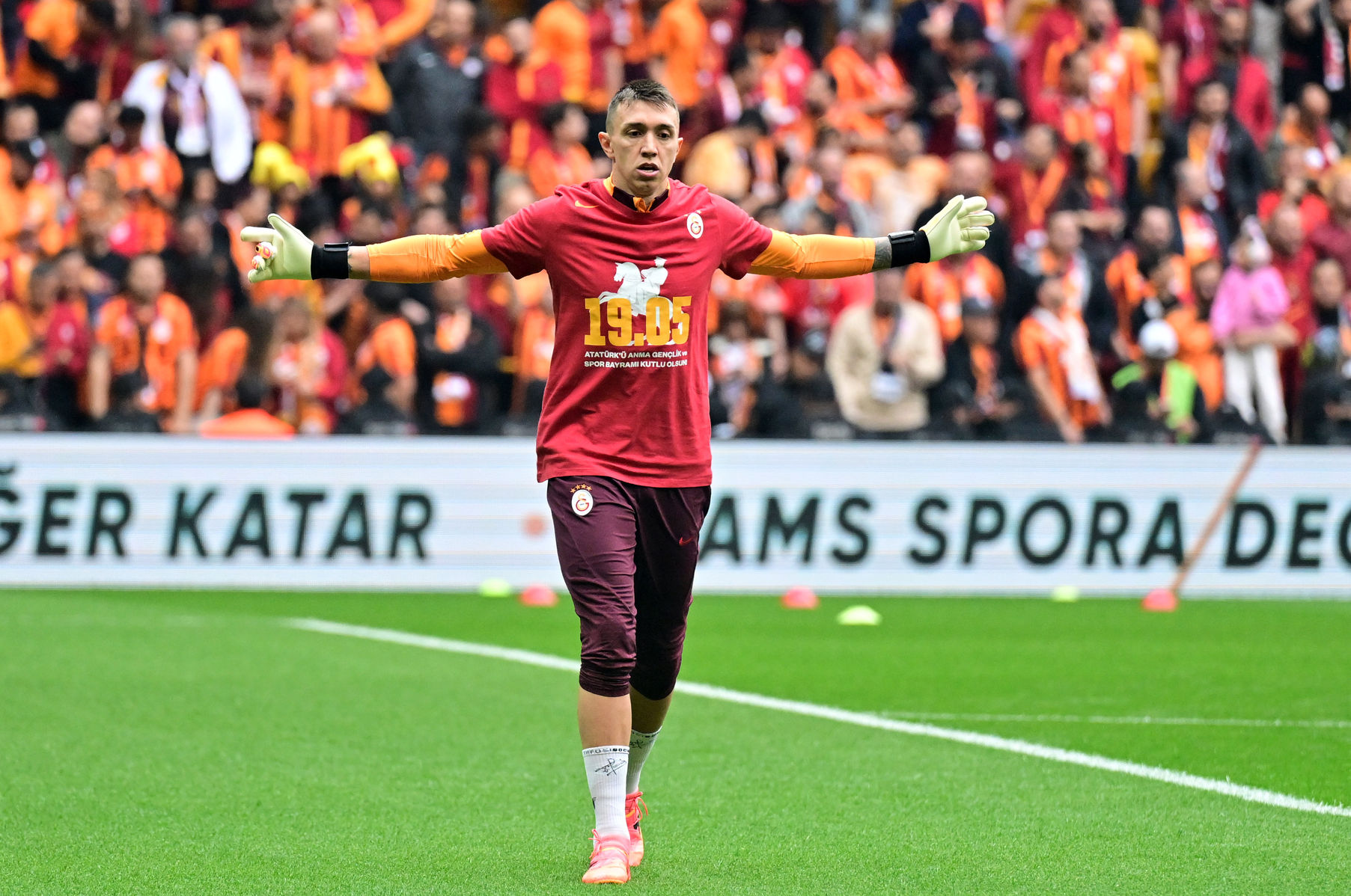 GALATASARAYLI OYUNCULAR ISINMAYA 19 MAYIS’A ÖZEL TİŞÖRTLE ÇIKTI