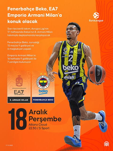 Fenerbahçe Beko, Avrupa Ligi'nin (EuroLeague) 17. haftasında EA7 Emporio Armani Milan'a konuk oluyor. Allianz Cloud'da oynanacak mücadele için bekleyiş sürerken, Olimpia Milano - Fenerbahçe Beko karşılaşmasının saati ve yayıncı kuruluşu gündemdeki yerini aldı. Bir maç eksiği bulunan son şampiyon, oynadığı 15 maçta 9 galibiyet, 6 mağlubiyet yaşadı. Peki, "Olimpia Milano - Fenerbahçe Beko maçı ne zaman, saat kaçta, hangi kanalda?" İşte ayrıntılar...