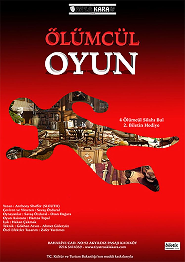 Tiyatro Ak’la Kara’da Anthony Shaffer yazdığı Savaş Özdural’ın yönettiği “Ölümcül Oyun” 7 Mayıs Pazar günü saat 17.00 ‘da Tiyatro Ak’la Kara sahnesinde sezonun son oyunu olarak seyirciyle buluşuyor.