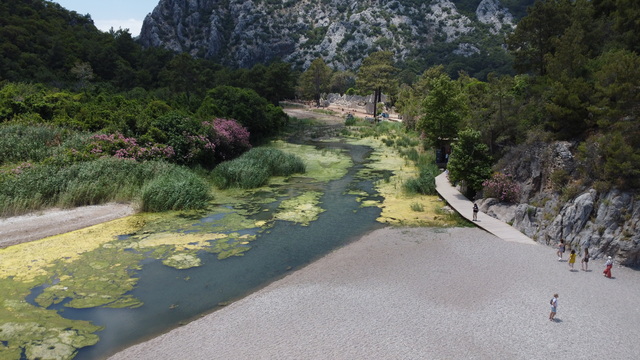 Likya uygarlığının en önemli yerleşim yerlerinden biri olan Olympos, kalıntılarının yanı sıra denize akan ırmağın her iki yakasında bulunmasıyla dikkati çekiyor.