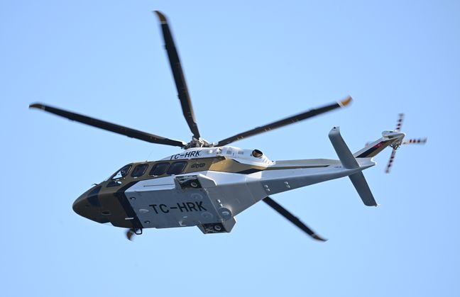 Koç, helikopter pistinin çıkışında iki arkadaşı ile objektiflere yansıdı.