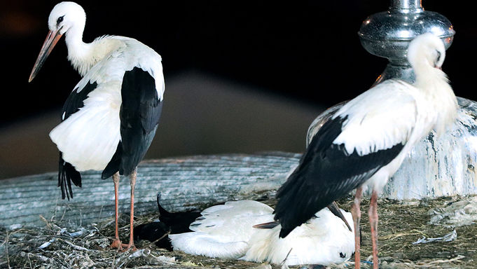 Bölge halkının kısa sürede benimsediği leylekler, erişkin duruma geldikten sonra çevredeki binaların çatısında vakit geçirmeye başladı.
