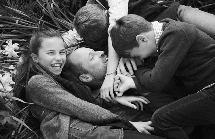 "Babalar günün kutlu olsun baba (öncesi ve sonrası!) Seni seviyoruz!" denilen mesajda, William ile çocuklarının ayakta çekildikleri fotoğraf ve ardından yerde üst üste şakalaştıkları ana ait fotoğrafa yer verildi.