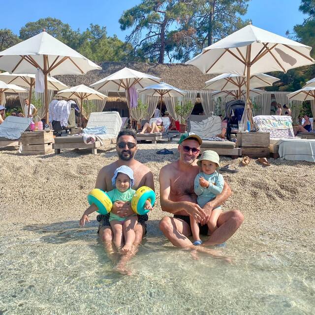 Bu sene de Fethiye'de buluşan Onur Buldu ve Aziz Aslan, yine bir plajda buluştu. Çocukları Masal ve Güneş ile objektif karşısında poz verdi.