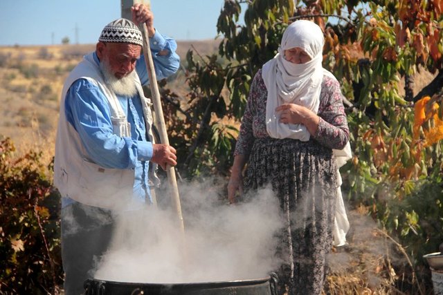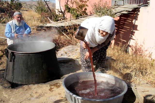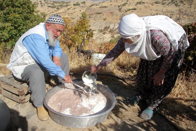 Orcik yapımı için bağlardan özenle toplanan üzümlerin "salk" adı verilen havuzlarda ezilerek şırasının alındığını, kazanlarda kaynatıldıktan sonra, yöreye has toprakla mayalandırıldığını ifade eden Emül, mayalanan şıranın süzülerek tekrar kaynatıldığını, buğday unu ilave edilerek, bulamaç haline getirildiğini belirtti.