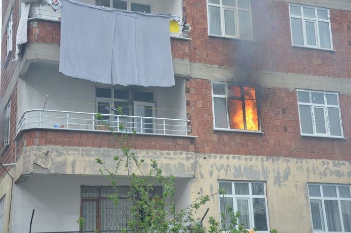 Olay anını anlatan komşuları Hakan Gümüş,” Evde Yücel kardeşimizin eşi bir anda tüp alev aldı diye bağırmaya başladı. Ben de hemen yukarı çıktım. Baktığımda tüp alev almıştı. Eve girdiğimde Yücel kardeşimizin iki tane çocuğu ile hanımı vardı. Onları hemen aşağı çıkardım. Daha sonra itfaiyeyi aradım” dedi.