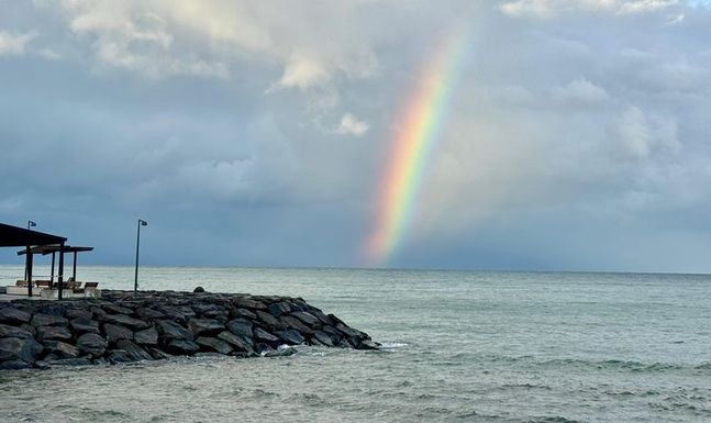 Denizin üzerindeki gökkuşağı, kentin birçok noktasından izlenirken, bazı vatandaşlar ise cep telefonlarının kamerasıyla gökkuşağının fotoğraflarını çekti.