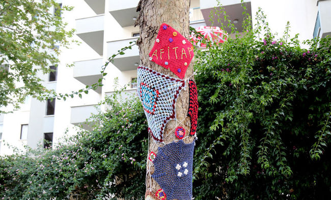 Mersin'in merkez Mezitli ilçesinde açılan Örgülü Sokak, ilgi odağı oldu. Ağaçların ve duvarların renk renk örgü ve resimlerle kaplandığı sokakta baharın gelişi ile birlikte adeta renk cümbüşü yaşanırken, sokağa girenler fotoğraf çekmeden çıkamıyor