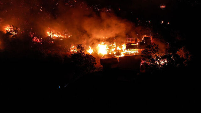 Bu sırada vatandaşlar, rüzgarın etkisiyle büyüyerek üzerlerine doğru yönelen alevlerden kaçtı.