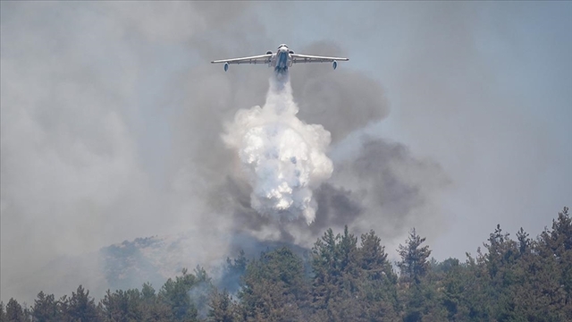 İhbar üzerine bölgeye, İzmir Orman Bölge Müdürlüğüne bağlı 4 uçak, 6 helikopter, 16 arazöz, 4 su ikmal aracı ve 3 dozer sevk edildi.