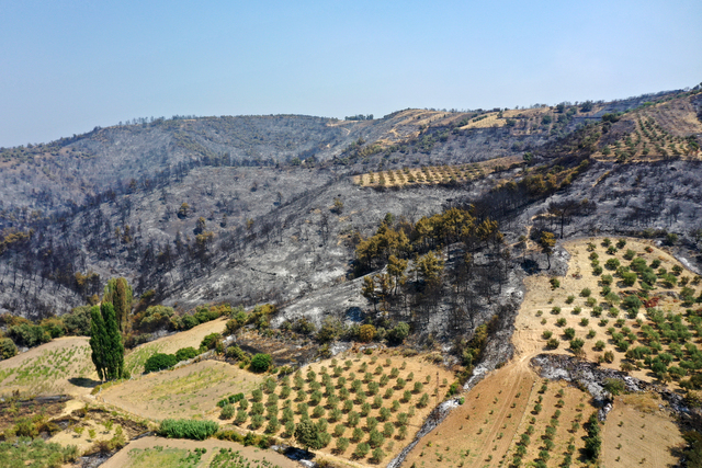 Yangınlarla boğuşan Ege'de yeşil alanlar yerini griye bıraktı. İzmir, Aydın, Manisa ve Uşak'ta 13 Ağustos'tan itibaren etkili olan ve ekiplerin cansiperane çabasıyla söndürülen orman yangınları sonrası ortaya çıkan görüntü felaketin boyutunu gözler önüne serdi. Yangınlarda ormanların yanı sıra kiminin yıllarca emek verdiği zeytin ve incir ağaçları kiminin evi ya da mahsulü zarar gördü, kiminin ise hayvanları telef oldu.