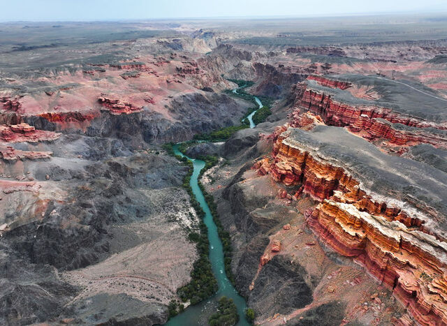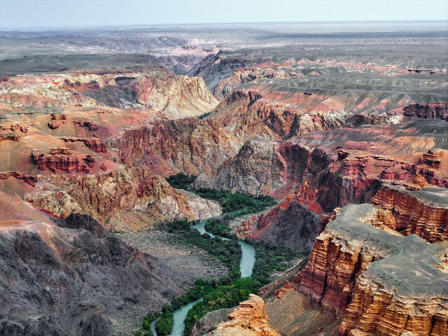 Kazakistan'da Almatı şehrinin yaklaşık 200 kilometre doğusunda bulunan Charyn Kanyonu, doğal güzelliği ve büyüklüğüyle ziyaretçilerde hayranlık uyandırıyor