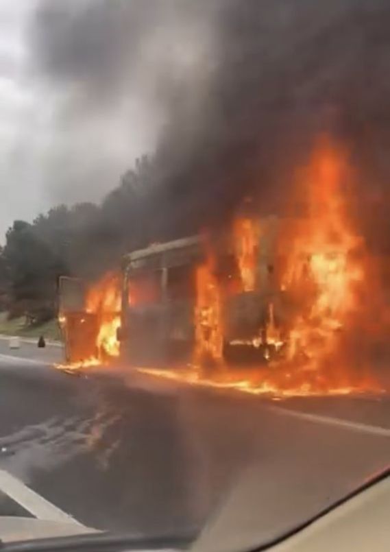 Akşam saatlerinde Tarsus-Adana-Gaziantep (TAG) Otoyolu'nun Toprakkale ilçesi Sakızgediği mevkisinde seyir halindeki tarım işçilerini taşıyan servis minibüsü, alev alarak yanmaya başladı.