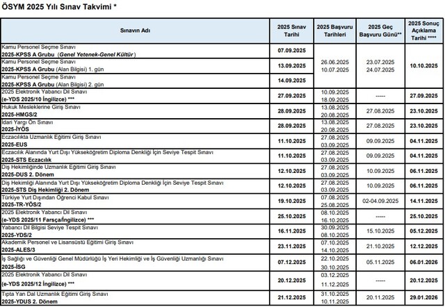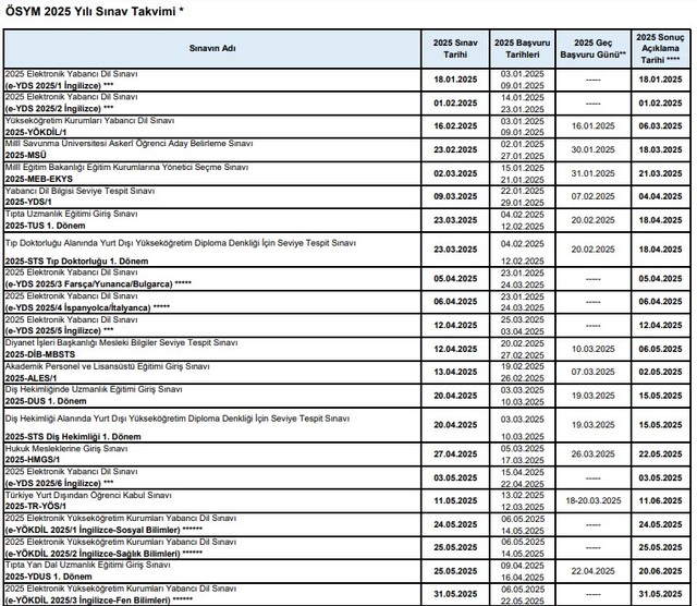 ÖSYM sınav takvimi 2025 açıklandı! 2025 YKS, KPSS, ALES, DGS, YDS, MSÜ sınavları ne zaman yapılacak?