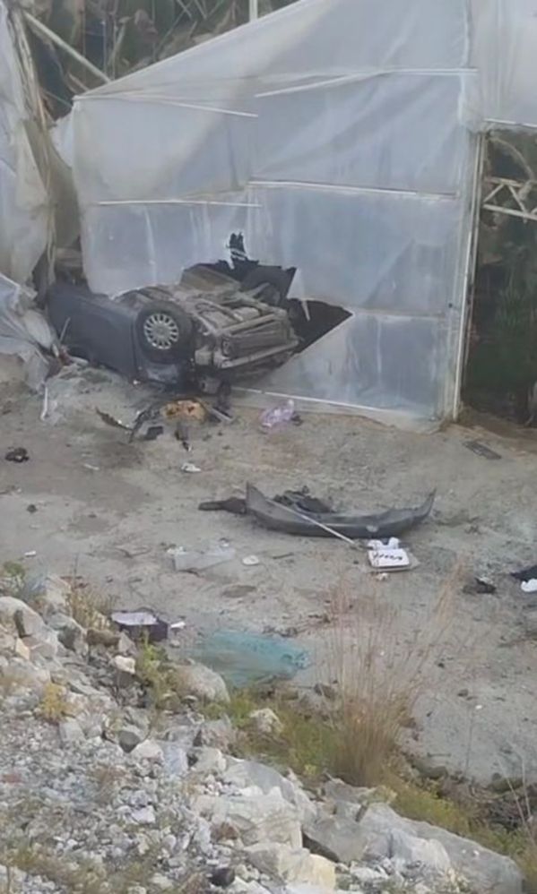 Antalya'nın Alanya ilçesinde muz serasına uçan otomobilde bulunan 1 kişi yaşamını yitirirken, 1 kişi de yaralandı.