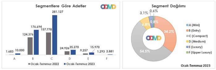 Yılın ilk yedi ayında otomobil pazarı segmentlere göre değerlendirildiğinde, pazarın yüzde 89.5’ini vergi oranları düşük olan A, B ve C segmentlerindeki araçlar oluşturdu.