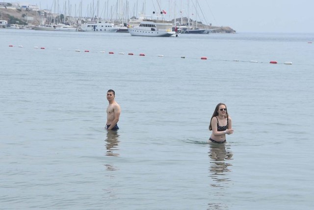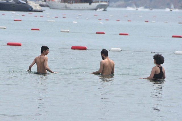 Muğla'nın Bodrum ilçesinde, oyunu kullanan vatandaşlar, plajlara gidip, denize girdi.
