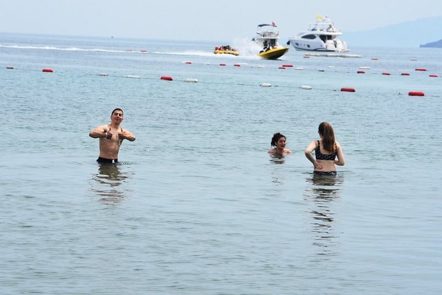 Bazı vatandaşlar denize girmeyi tercih ederken, bazıları da güneşlenmeyi tercih etti.