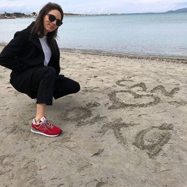 30 yaşındaki oyuncu, sahile kendisinin ve eşinin adını yazdı. Verdiği pozu sosyal medyadan yayınlayan Öykü Karayel, karesine "Adını dağlara yazdım yarim" notunu düştü.