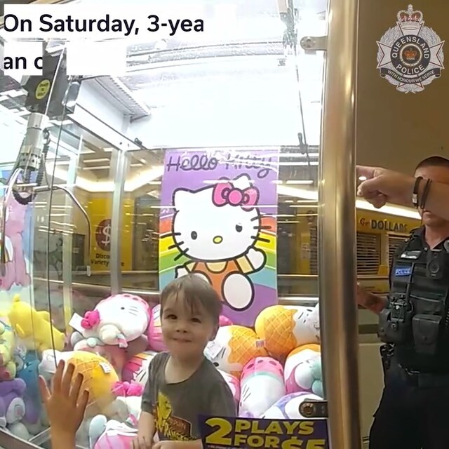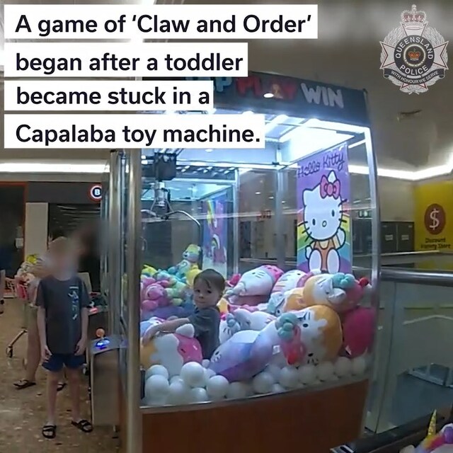 Polis yaptığı açıklamada, "Cumartesi günü Capalaba'daki bir alışveriş merkezinde oyuncak makinesine tırmanan maceraperest Ethan'ı kurtarmak için polis çağrıldı.