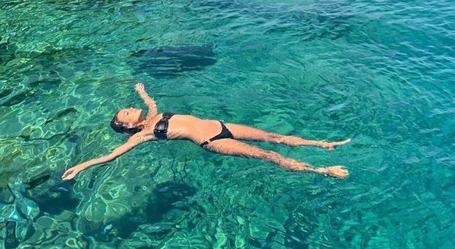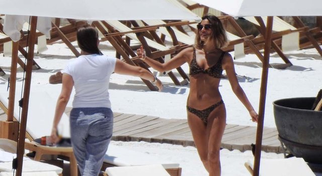 Tatilinin son gününde tekne turuna da çıkan Kelley daha sonra sahilde koşarken objektiflere takıldı.