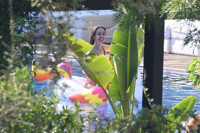 Kübra Hera Aslan, sevgilisi Ozan Doğulu'nun kızları Arya, Lila ve Elya ile havuzda oyunlar oynadı.