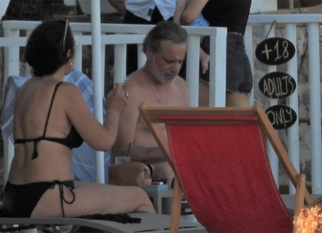 Şezlongundan muhabirlere el hareketleri yapan ünlü oyuncu, arkadaşının "Gitme Ozan!" uyarısına umursamayarak muhabirlere tepki gösterdi.