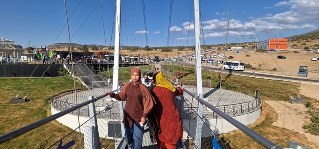 Orta Asya'daki en uzun asma yaya köprüsünün zaman zaman rüzgarda sallanması adrenalin tutkunlarını köprüde yürümek ve fotoğraf çektirmekten alıkoymazken, bazı ziyaretçiler de köprünün bitişiğinde kurulan yüksek noktadan halatla atlama deneyimini yaşamayı tercih ediyor.