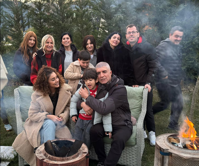 Özcan Deniz, eşi Samar Dadgar, oğlu Kuzey ve kız kardeşleriyle evinin bahçesinde piknik yaptı.