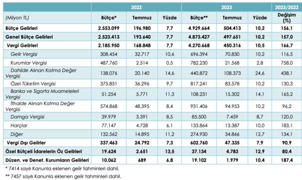 ➔ İlki doğrudan ve dolaylı vergi artışları ki, vergi gelirleri geçen yılın temmuz ayındaki 169 milyardan 450 milyar liraya çıktı ve yüzde 167 oranında büyüdü.