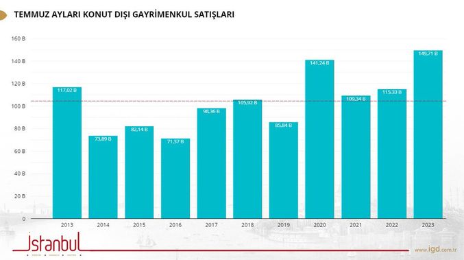 ➔ Tapu ve Kadastro’nun verilerine göre temmuz ayında toplam gayrimenkul satışları 275.556 adet oldu. Bundan 109.548 konut satışı düşüldüğünde geriye 166.307 konut dışı gayrimenkul satışı kalıyor.