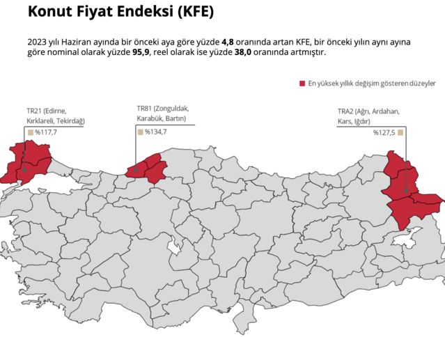 Ve de dün açıklanan haziran ayı konut fiyatlarının seyrini gösteren Türkiye haritasında yıllık en yüksek değerlenme ne tesadüf ki Edirne’nin içinde olduğu Trakya illeri ile Kars ve civar illerinde yüzde 117-127 arasında gerçekleşti. Ülkenin güney illerinden sonra Kuzey illeri prim yapmaya başladı gibi.