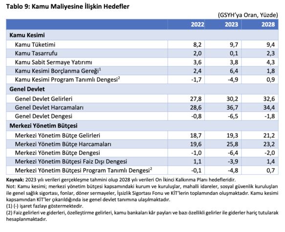 ➔Bu çerçevede Kalkınma Planı kemer sıkmadan sadece enflasyonu değil bütçe açıklarını en azından yarı yarıya indirmeyi ve 2028’de yüzde 2’ye düşürmeyi hedefledi.