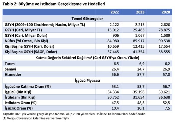 ➔Bitişikte yer alan tablolardan izlenebileceği gibi GSYH bu yılki 25.5 trilyon liradan 2028’de 78.9 trilyon liraya çıkacak.