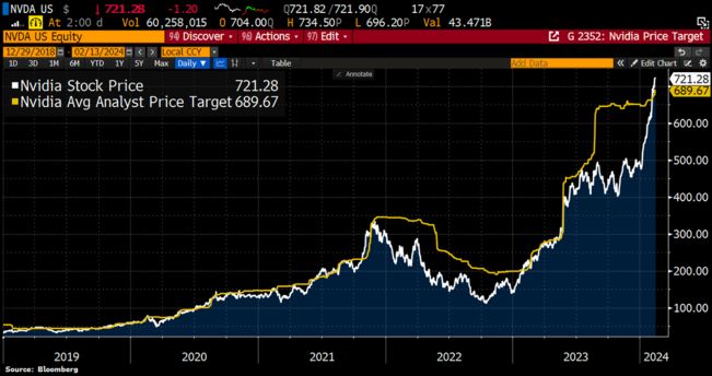 ➔Geçen yıl yüzde 223 yükselen Nvidia hisseleri 2022’de yüzde 47.7 oranında düşmüştü. 2019 sonunda 58.6 dolar olan hisse senetleri 16 Şubat itibariyle 726.13 dolara yükseldi. 4 yılı biraz aşkın zamanda hisse senetlerinin değer artışı yüzde 1.139 oranında arttı.